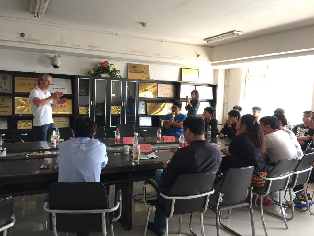 24日上午,w88手机版登录官网组织参与国际交流项目的员工与Jason Williams先生进行互动交流。Jason Williams先生将卡迪夫城市大学的课程体系、教学内容等向同学们做了介绍,并详细解答了员工所关心的问题,最后,充分肯定了员工们的口语交流及逻辑思维能力,鼓励大家坚持英语与专业课程的学习,顺利升入卡迪夫城市大学。