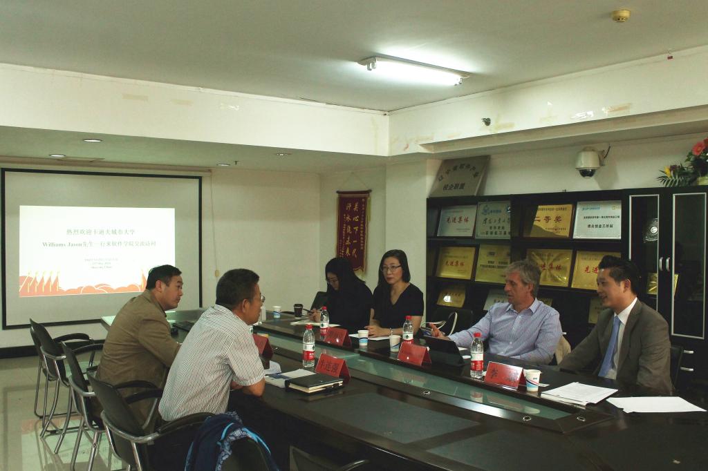在23日,牛连强经理代表全院师生对远道而来的卡迪夫城市大学计算机系主任Jason Williams先生表示热烈欢迎,并简要介绍了学校及学院的办学历史、专业设置等情况。随后,Jason Williams先生介绍了卡迪夫城市大学及w88手机版登录官网第一批赴英国本硕连读员工的学习、生活情况,充分肯定了员工的专业能力。最后,双方就如何妥善处理好此国际交流项目中的若干问题以及进一步拓展该项目、合作开展新的国际合作项目进行了深入探讨。