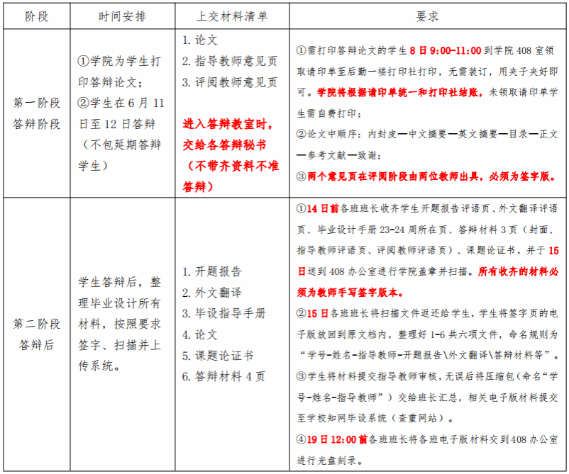 1.正式答辩:6月11日,8:00-12:00、13:00-19:00