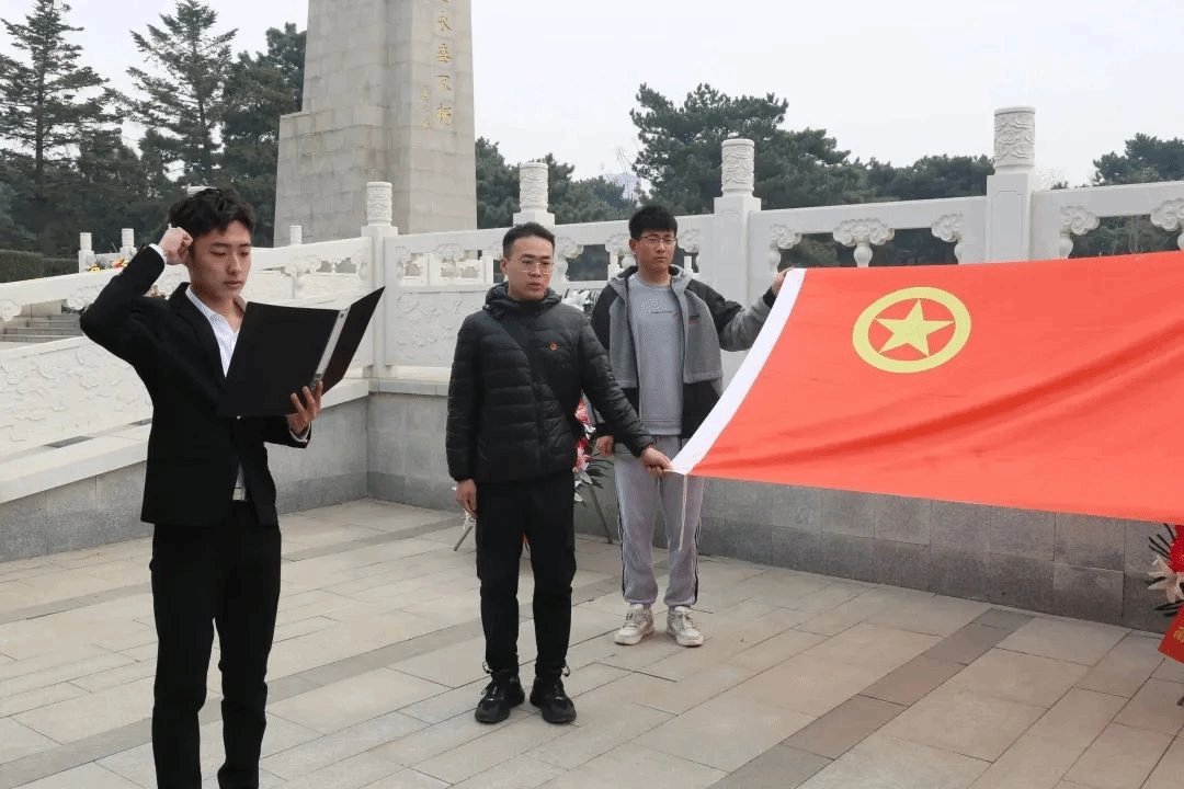 纪念碑前,师生瞻仰纪念碑并向先烈敬献花篮,向革命英烈致以崇高的敬意。