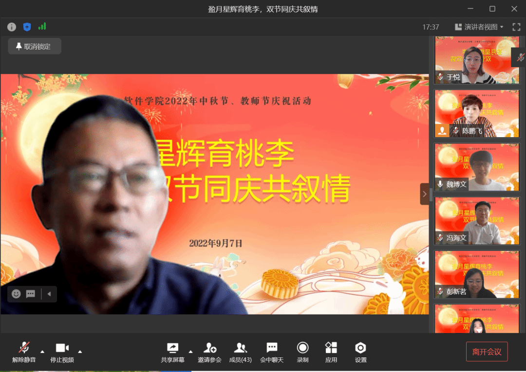 9月7日,学院通过线上召开了庆祝教师节座谈会。学院全体教师齐聚云端,谈教育初心,聊成长体会,话软件温情,在欢声笑语里享喜悦、共叙情,共同庆祝第三十八个教师节的到来。