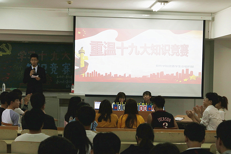 在笔试考核阶段,w88手机版登录官网采取个人自学、支部同学等方式,营造了人人学讲话、知理论的浓厚氛围。现场竞赛设置必答题、抢答题等多个环节,综合检验参赛选手个人理论知识储备、现场应变能力和团队协作精神。比赛中,选手们凭借着对时事政治、国家发展的战略方针、政策法规等知识的积累,踊跃抢答,精彩表现博得了现场观众们的热烈掌声。经过两个多小时的激烈角逐,最终软件1705班获得一等奖。